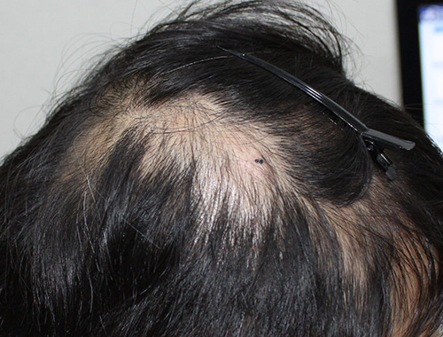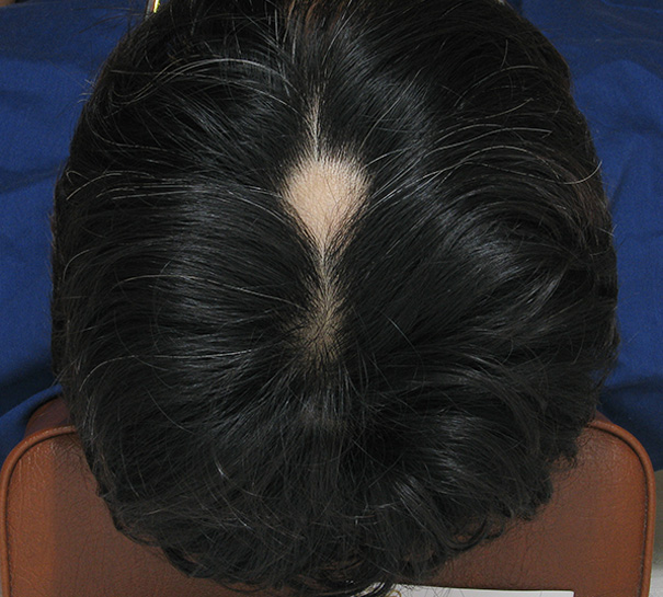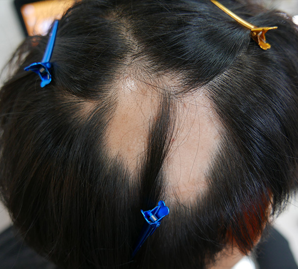 지속된 과로나 타고난 허약체질로 인해 부신기능이 저하된 상태에서 어떤 자극으로 인해 원형탈모가 발생하고 이것이 잘 낫지 않고 지속되어 점점 심해지는 경우에 해당합니다.