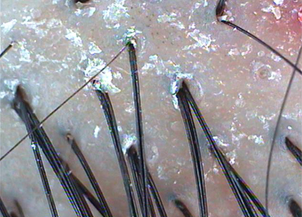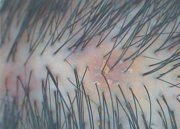 지루성의 증상은 피지가 많아 두피가 기름지고 습하며, 노란색의 두터운 비듬이 지저분하게 생겨 머리가 떡이 지고, 화농성의 염증이 자주 동반됩니다. 심한 경우에는 모낭염이 모여 군집을 이루거나, 종기처럼 커져서 해당부위에 국소적인 탈모를 일으키기도 합니다.