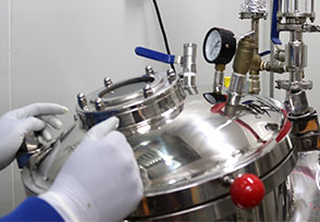 약재를 제분 후 혼합기로 물과 혼합합니다.