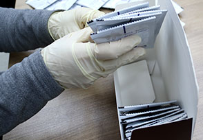 바코드 시스템을 이용하여 환자의 처방내용과 포장내용의 일치여부를 확인한 후 택배 포장합니다.