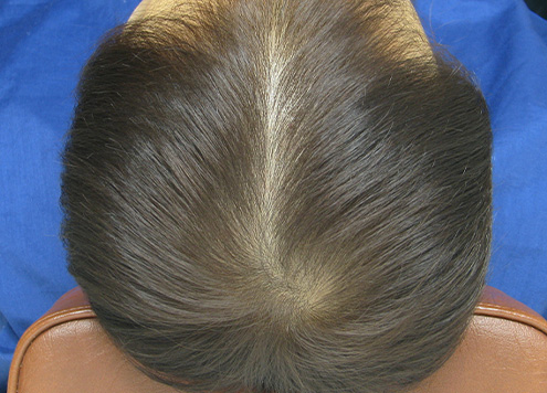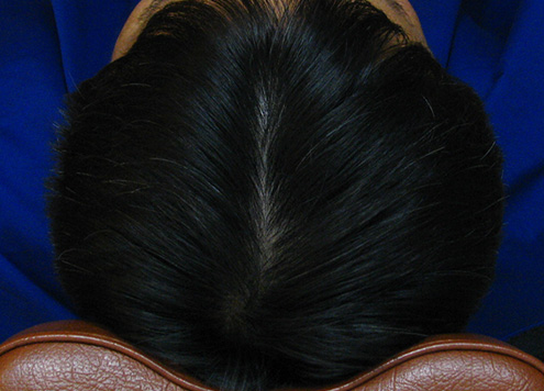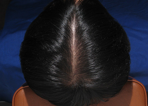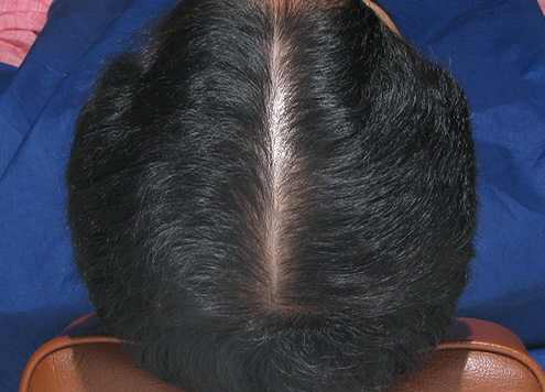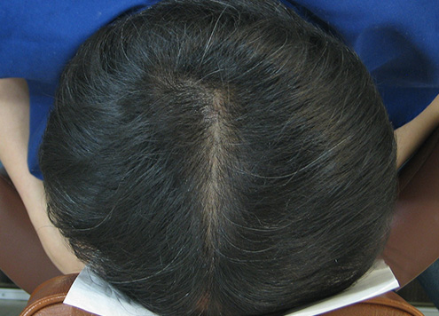 | 두피에 혈액이 정체되어 붉게 충혈됨. 피부 건조로 각질이 일어나기도 함. | 두피가 희고 깨끗함. |