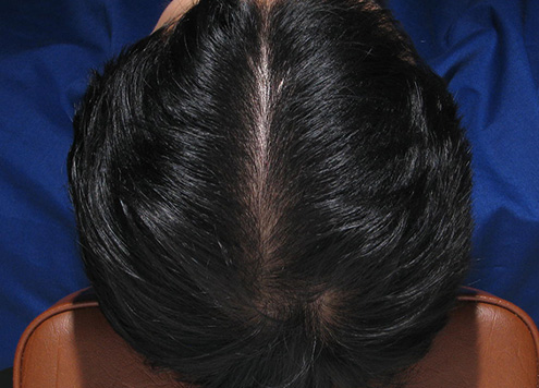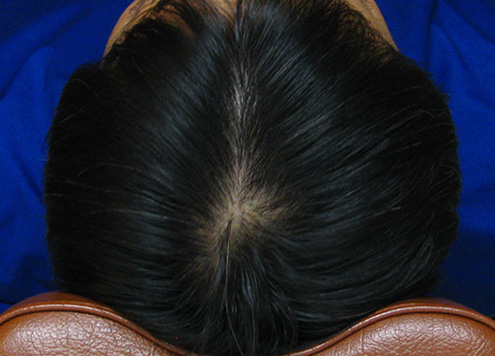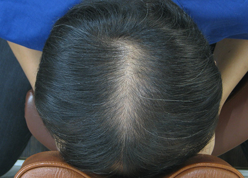 | 체열이 올라감에 따라 세포 대사가 빨라져 모발의 생존주기가 짧아짐. 점점 더 힘없고 가는 모발이 자라게 되며, 모발 개수 또한 감소됨. | 모발 | 모공당 2~3가닥으로 정상 굵기의 건강한 모발이 자람. |