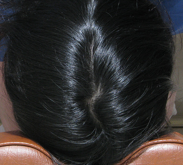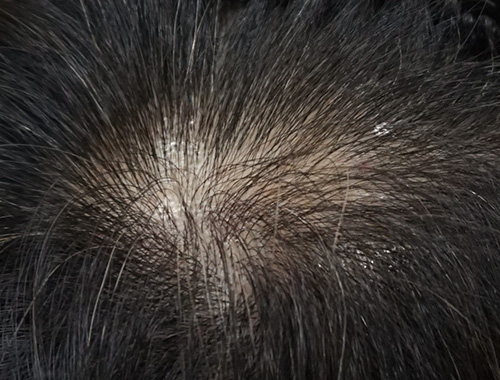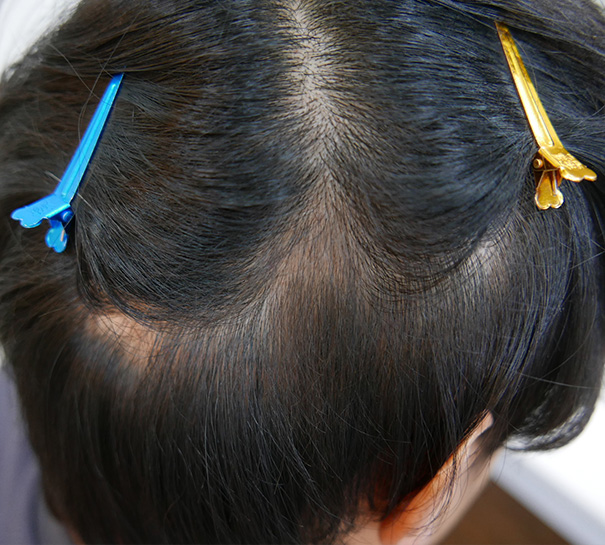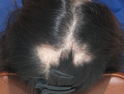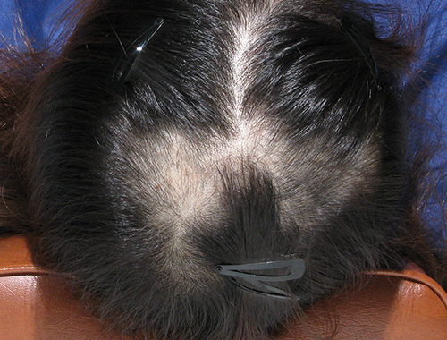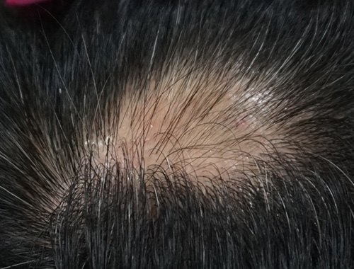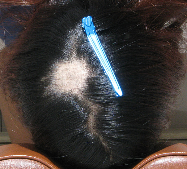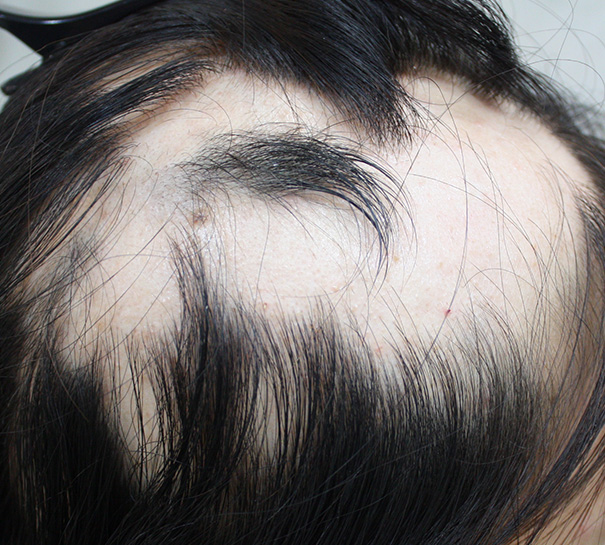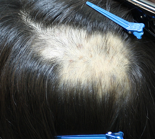 지속된 과로나 타고난 허약체질로 인해 부신기능이 저하된 상태에서 어떤 자극으로 인해 원형탈모가 발생하고 이것이 잘 낫지 않고 지속되어 점점 심해지는 경우에 해당합니다.